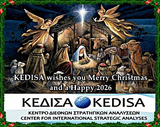 News KEDISA KEDISA wishes you Merry Christmas and a Happy 2026! by kedisa.gr December 19, 2025 written by kedisa.gr December 19, 2025 2 0 comments 0 FacebookTwitterLinkedinViberEmail kedisa.gr previous post The Return of Raison d’État: National Interest and Survival in the Post-Liberal International Order next post How Oil Trumps Democracy: The case of Venezuela Related Posts The Center for International Strategic Analyses (KEDISA) co-organized with the... March 31, 2025 Webinar: “The Challenges of EU Enlargement in Eastern Europe and... March 17, 2025 KEDISA wishes you Merry Christmas and a Happy 2025! December 20, 2024 The Founder & President of KEDISA Dr. Andreas G.Banoutsos participated... April 17, 2024 The Center for International Strategic Analyses (KEDISA) co-organized successfully with... February 26, 2024 Webinar: “The challenge of effective imposition of Western sanctions against... February 12, 2024